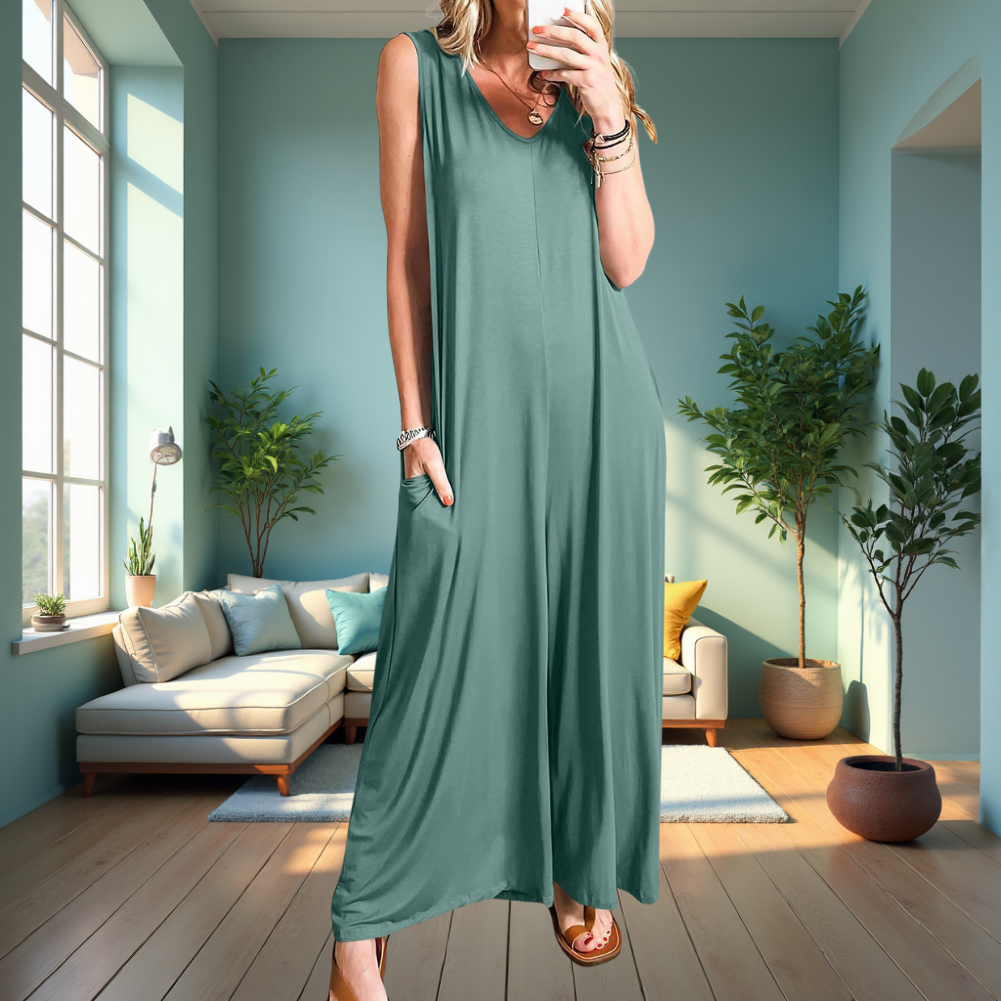 Why everyone loves the Gloria Comfortable jumpsuit with V-neck and wide legs: